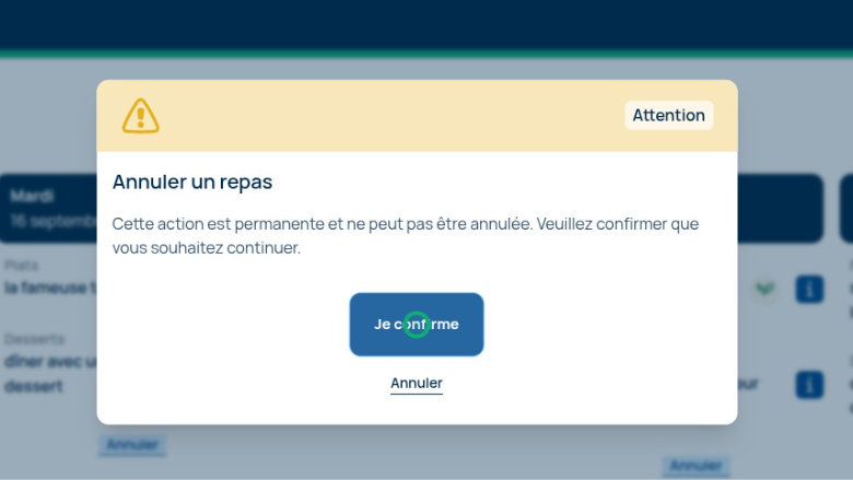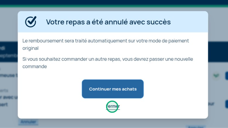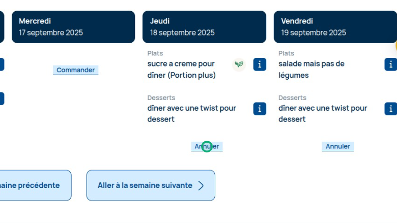 Cliquez sur le bouton « Annuler » à côté du repas à annuler.