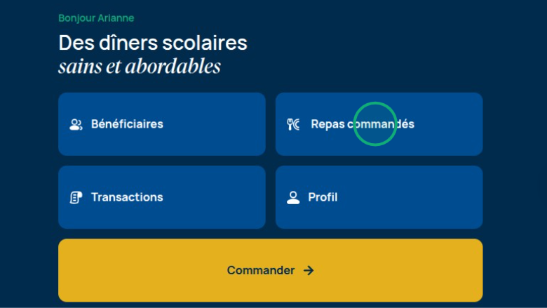 Cliquez sur le bouton « Repas commandés » pour visualiser vos repas commandés.