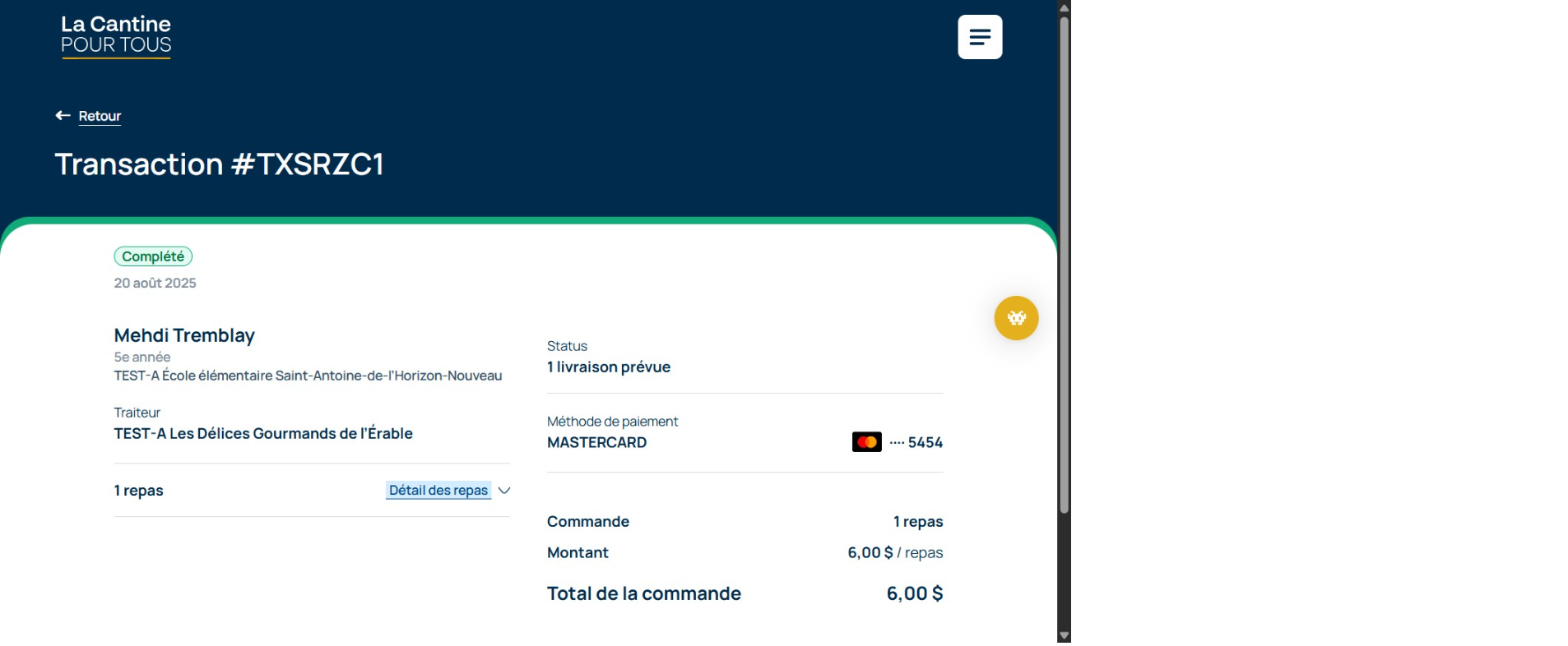 Pour modifier/annuler les repas commandés, se référer à la page Comment modifier une commande ?