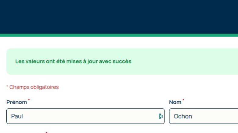 Le système confirme que les informations ont été mises à jour avec succès.