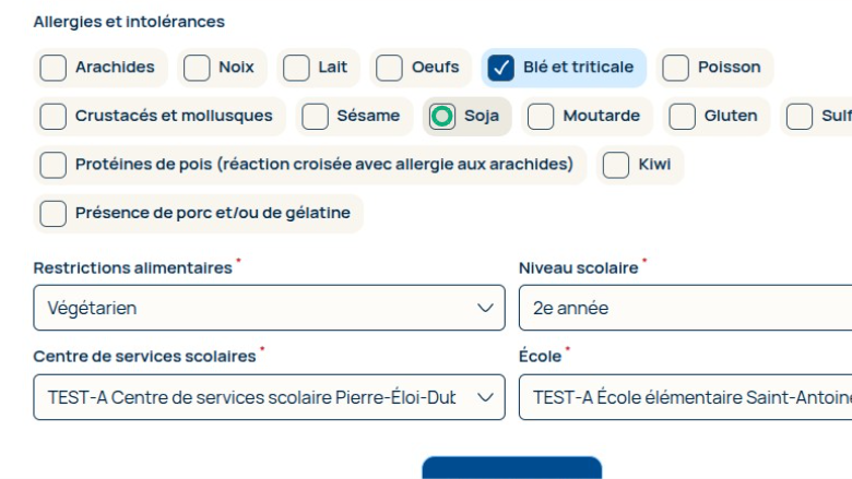 Cliquez sur l’allergie que vous souhaitez ajouter ou cliquez sur une allergie déjà sélectionnée pour la supprimer.