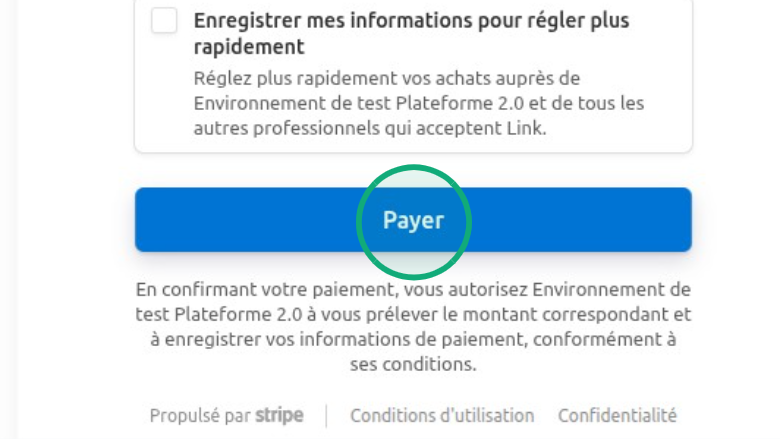 Cliquez sur le bouton « Payer » pour confirmer le paiement.