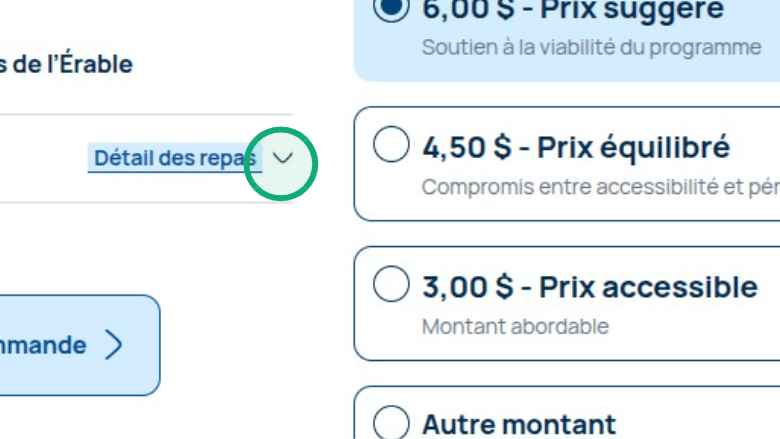 Vérifiez les détails de votre commande et choisissez le prix que vous payez par repas. Il n'y a aucune taxe additionnelle. Pour plus d'informations sur le prix flexible, consultez notre article.