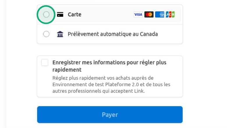 Sélectionnez l'option de paiement qui vous convient le mieux et entrez les informations demandées.