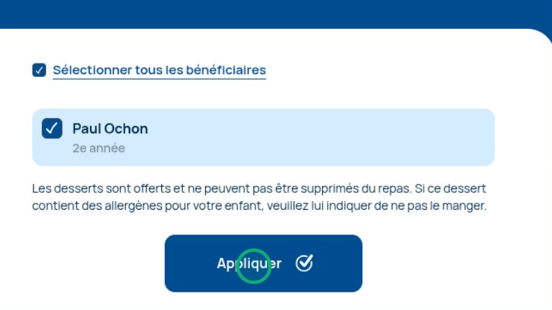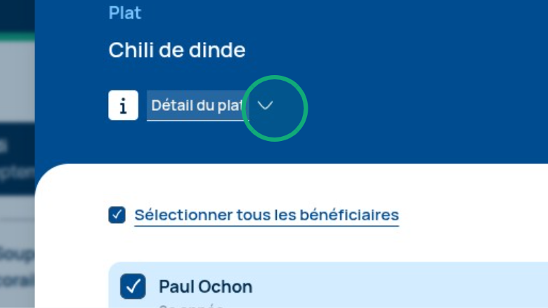 Vous pouvez sélectionner un repas pour un·e ou plusieurs bénéficiaire.