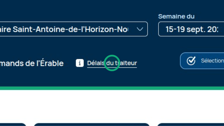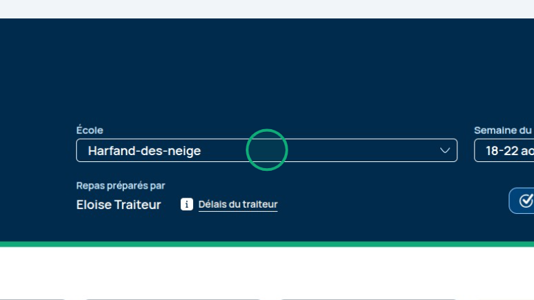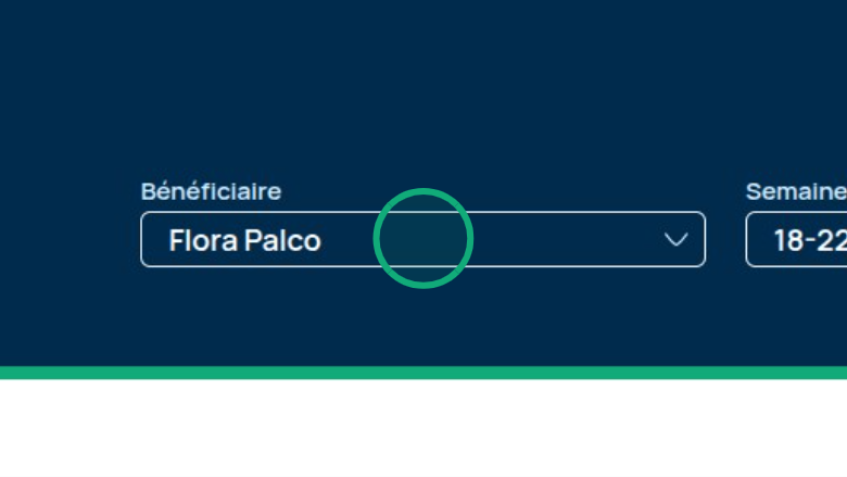 Sélectionnez le bénéficiaire pour lequel vous souhaitez voir les commandes de repas, puis sélectionnez la semaine de la commande.