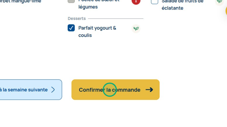 Le dessert est inclus avec chaque repas et est sélectionné automatiquement.